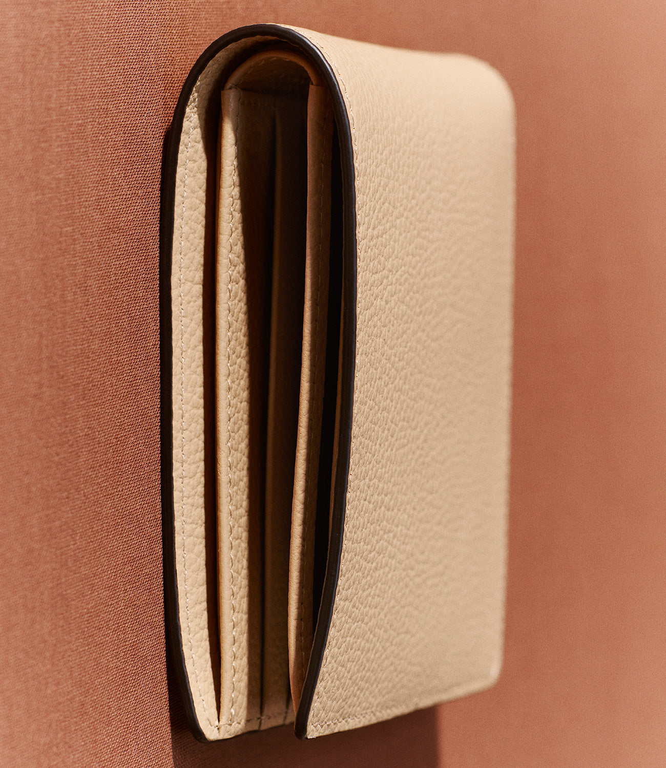 Cuir signature exclusif de notre Maison, embossé avec des lettres T microscopiques créant un motif distinctif et intemporel.