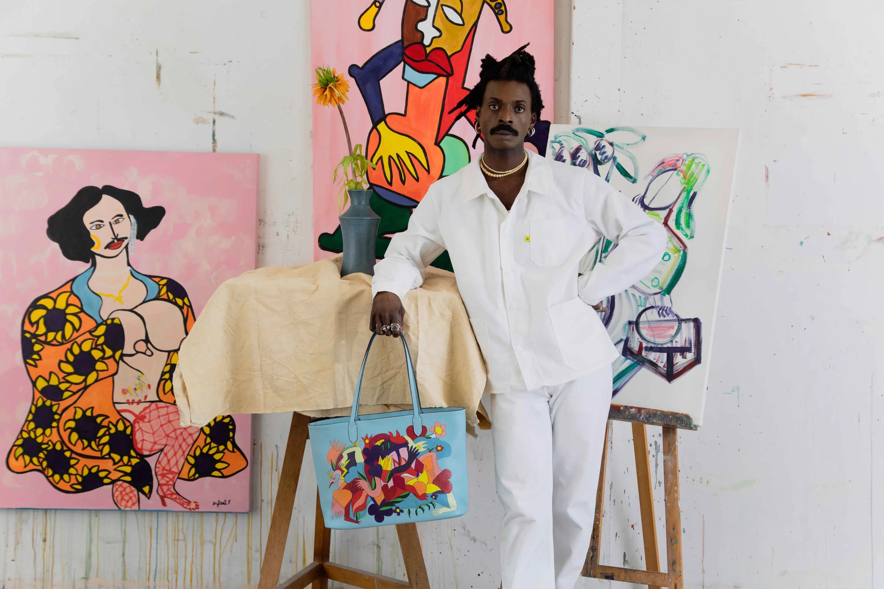J’aime beaucoup cette matière qu’est le cuir, mais aussi la mode en général. C’est une matière organique qui voyage dans le temps et qui m’a toujours fasciné. J’ai souvent rêvé d’utiliser mon art pour me lier à la mode. Ici en l’occurrence, on parle d’un sac, un accessoire clé, qu'on ne peut vraiment pas négliger dans la mode, et je trouve ça beau.