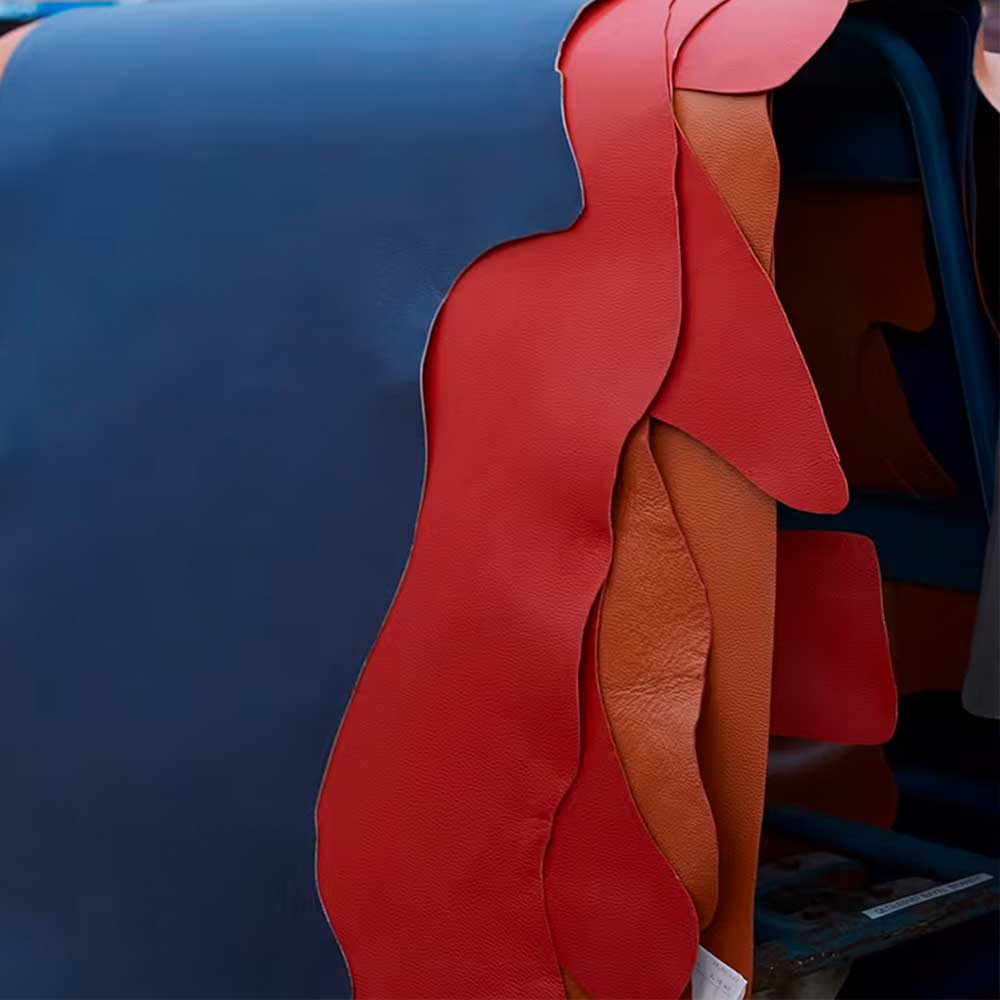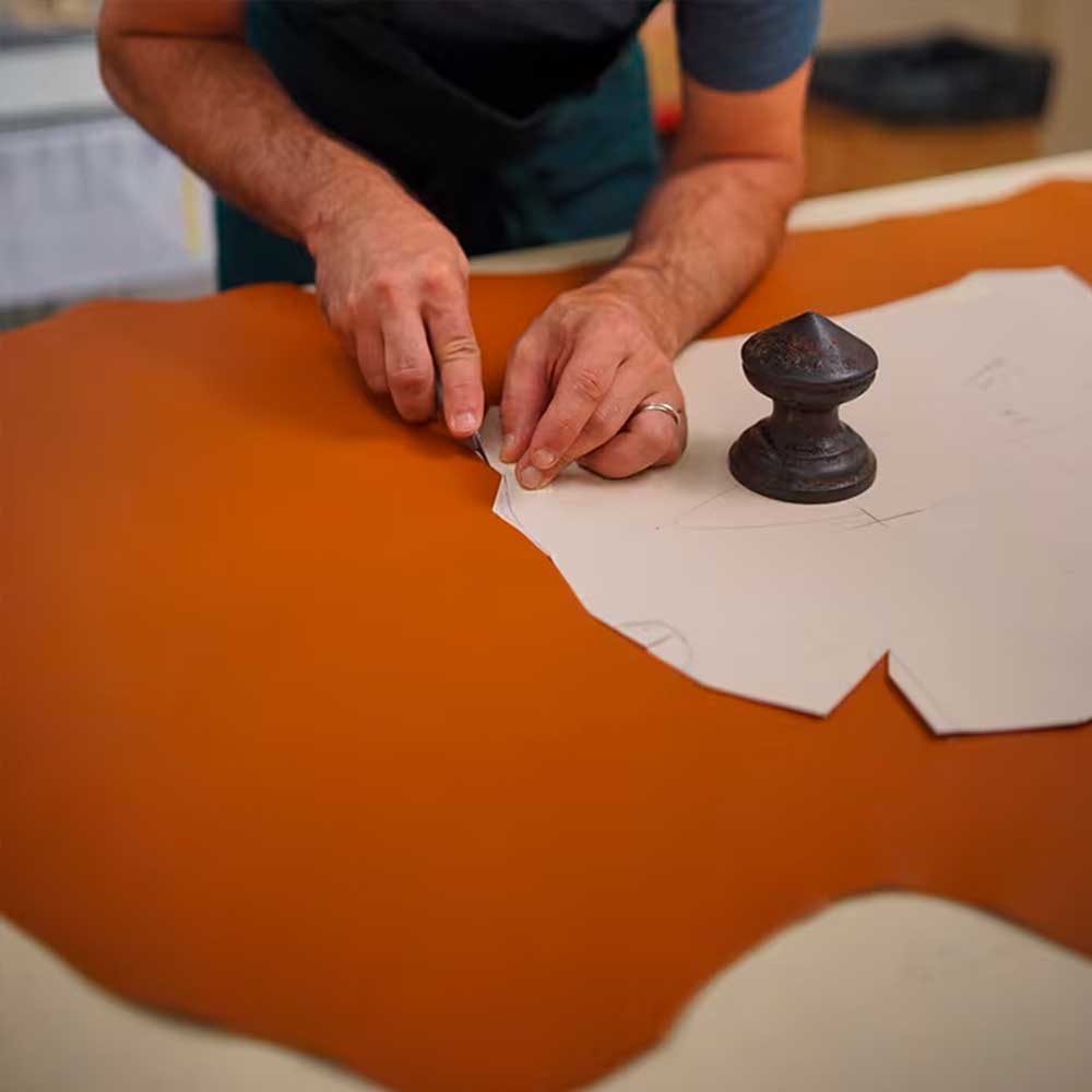 Nuestro material principal, nuestra musa, nuestra atención. La flor de la piel corresponde a la parte exterior; en nuestra Maison utilizamos solamente la piel llamada «plena flor», que conserva toda su fibra original y se encuentra en la capa más superficial, donde las fibras están más apretadas y, por tanto, son de mejor calidad.
