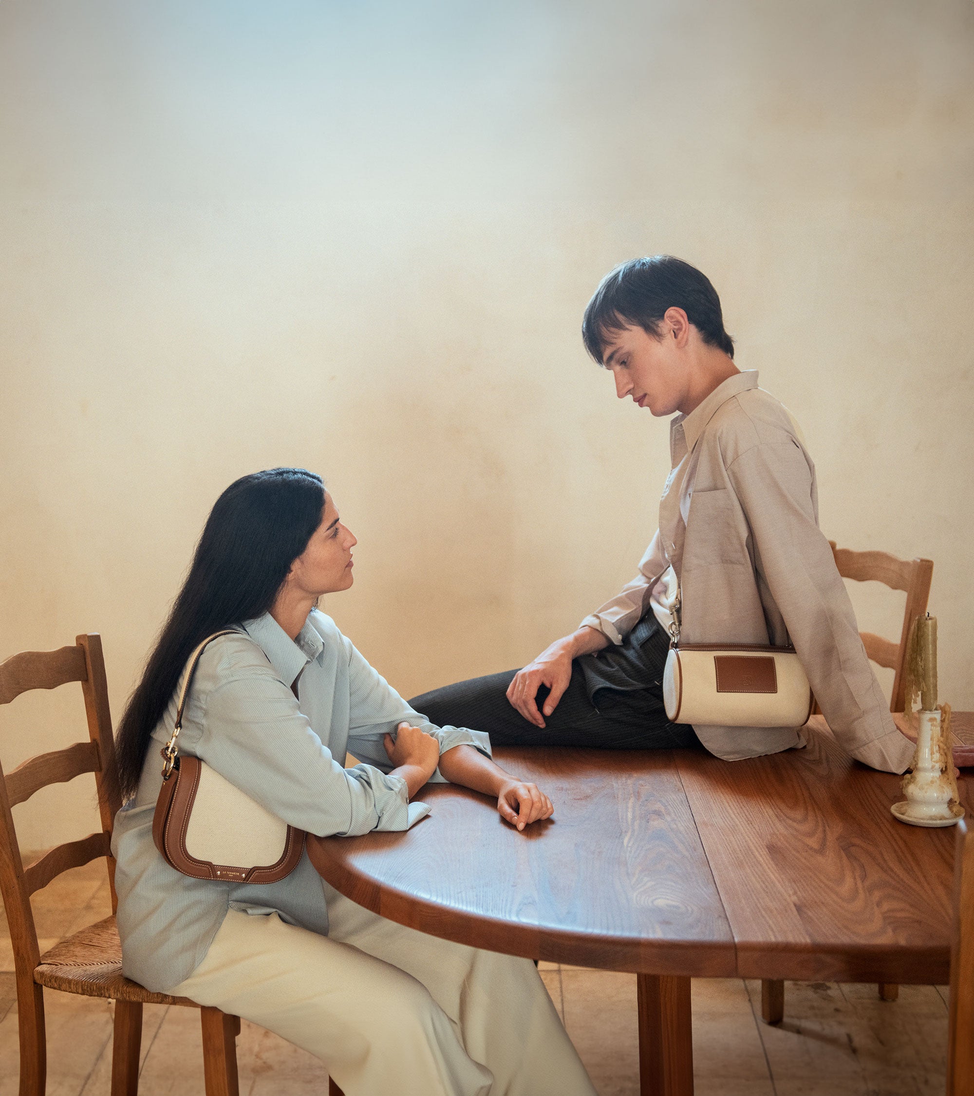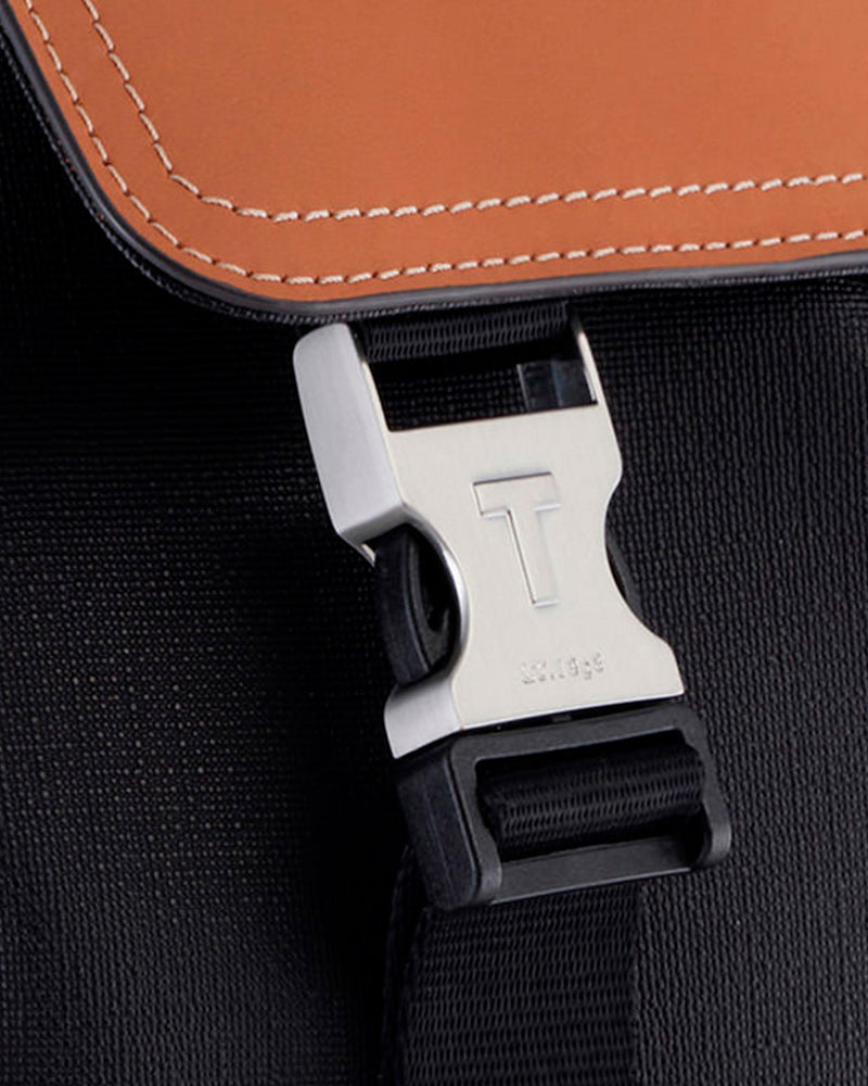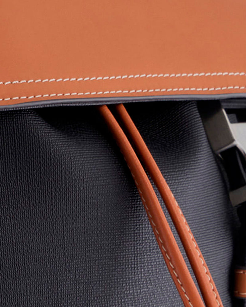 Las piezas de esta línea se distinguen sobre todo por la combinación de piel y tela, además de por suinconfundible cierre con un acabado plateado cepillado. Cada modelo está diseñado para el día a díay dispone de amplios espacios para guardar lo necesario.