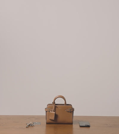 Minibolso con los cierres emblemáticos en forma de T, interior de jacquard 125.° aniversario y colgantes desmontables. Inscripción Le Tanneur y elementos metálicos con acabado plateado. Este artículo puede llevarse en la mano, del hombro o cruzado gracias a su bandolera ajustable y desmontable.