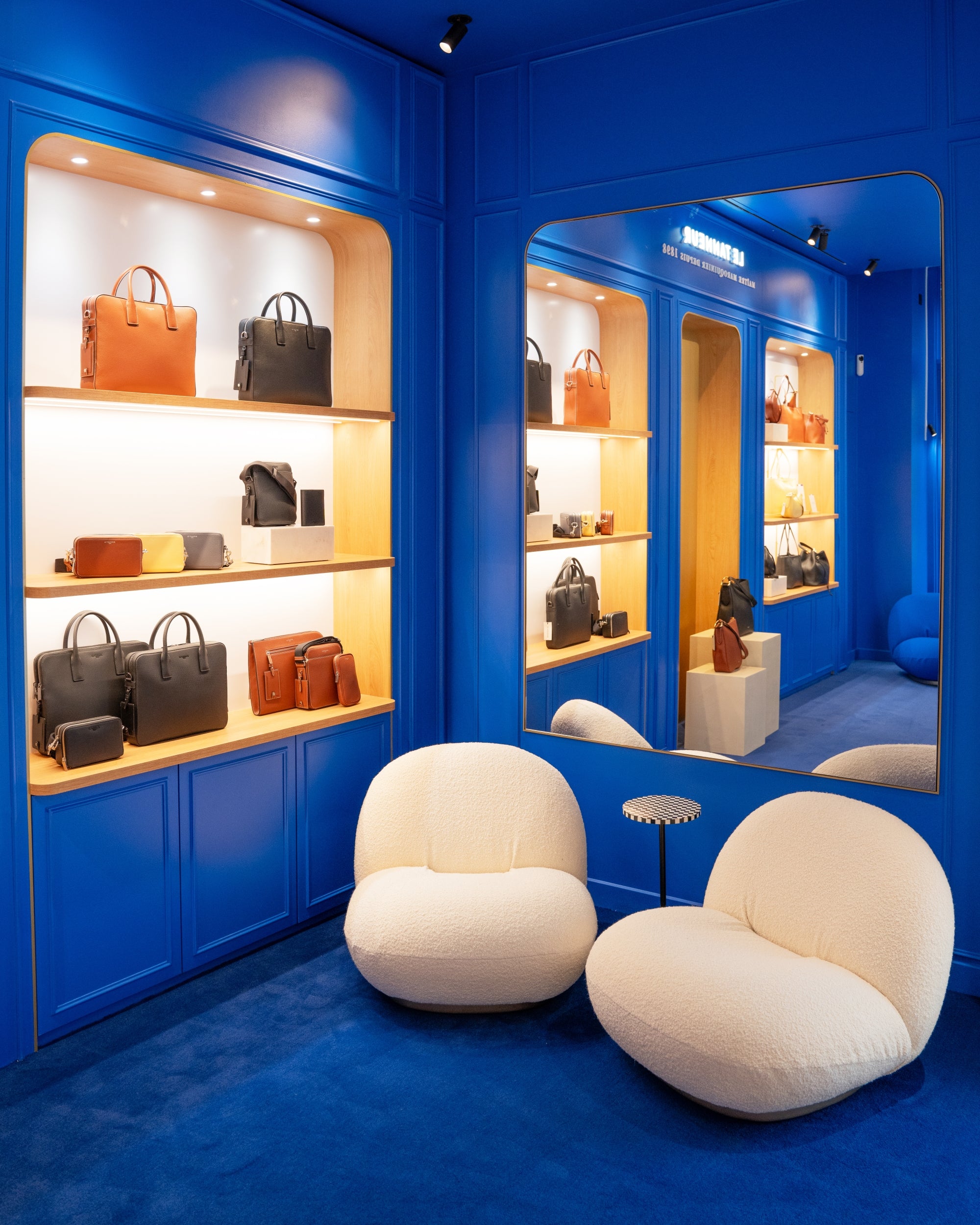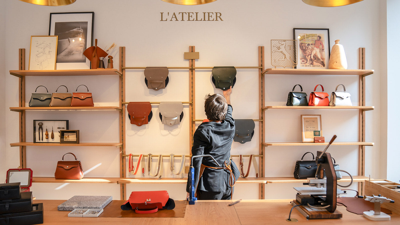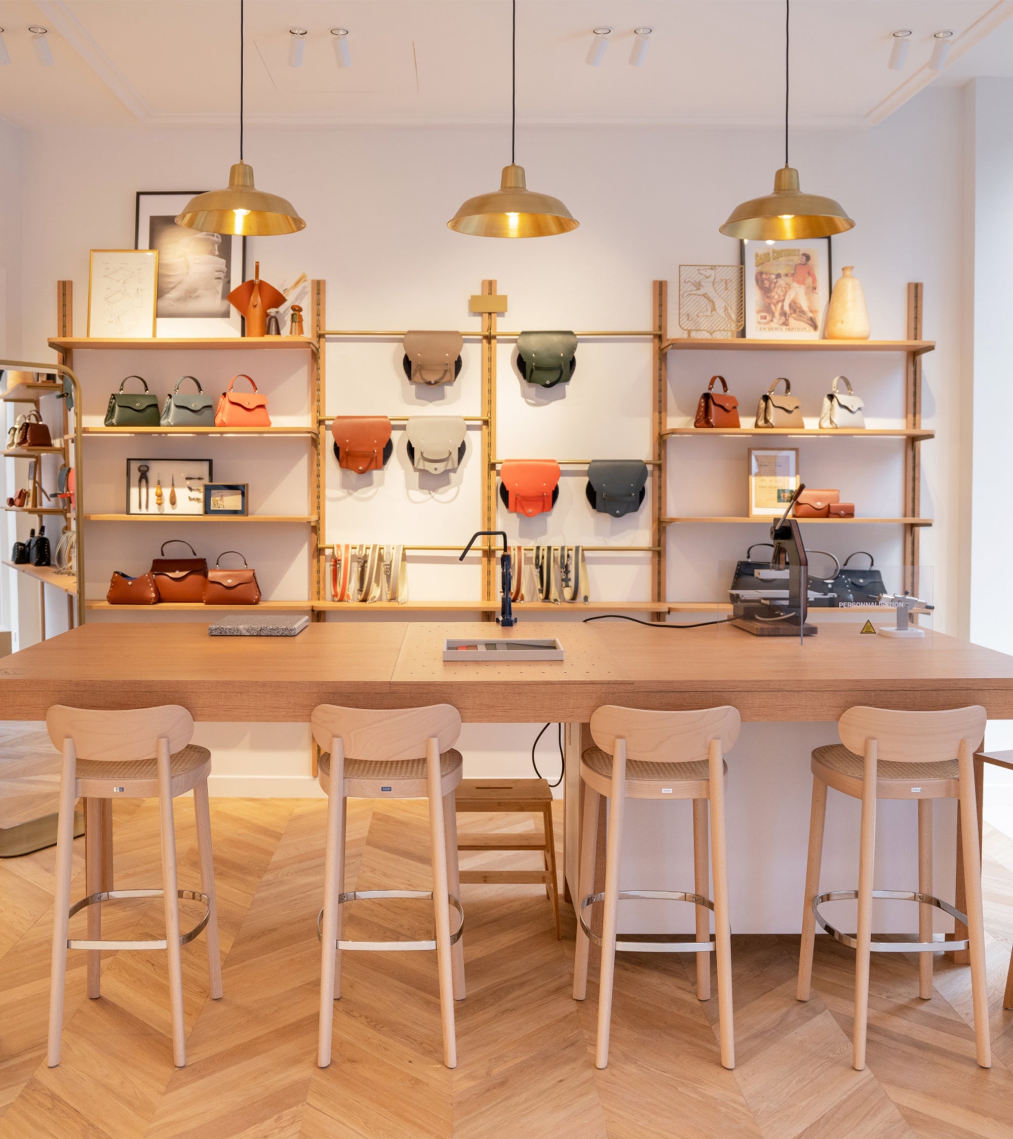 - Un lieu à l’image de nos créations en cuir : notre maroquinerie allie le beau et l’utile, les belles matières et le travail artisanal. Une approche que l’on retrouve dans les finitions, l'aménagement intérieur ou encore les doublures de chacune de nos pièces en cuir.