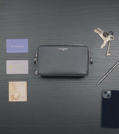 Sacoche portefeuille zippée avec éléments métalliques finition argent et intérieur jacquard anniversaire 125 ans. Porté main, épaule ou croisé grâce à sa bandoulière ajustable et amovible.